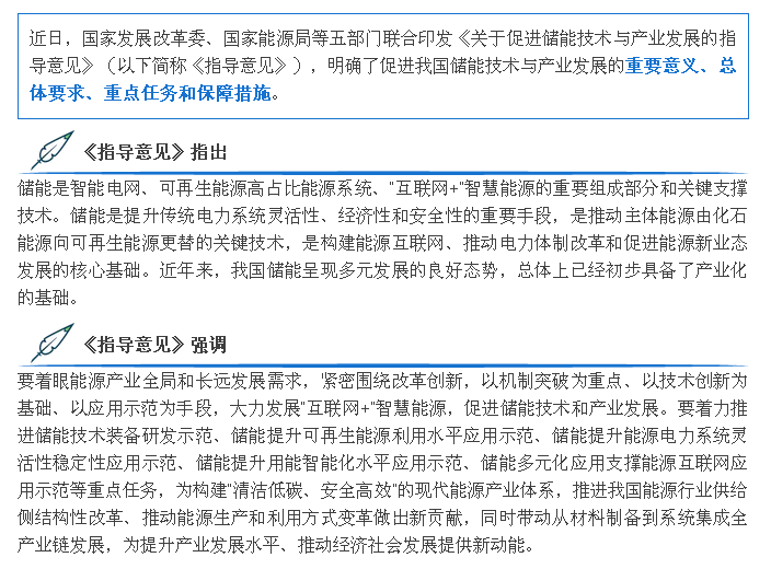 國(guó)家發(fā)展改革委、國(guó)家能源局等五部門聯(lián)合印發(fā)《關(guān)于促進(jìn)儲(chǔ)能技術(shù)與產(chǎn)業(yè)發(fā)展的指導(dǎo)意見(jiàn)》